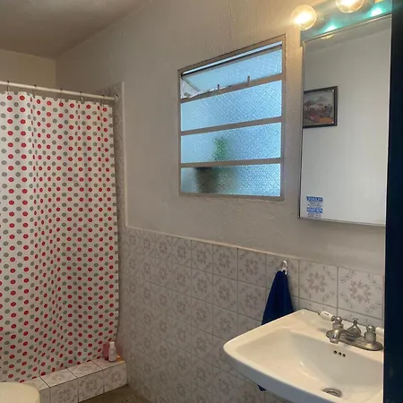 Guest House Casa Las Lajas is fitted with a separate toilet and a shower in a shared bathroom. Toiletries and towels can also be found.